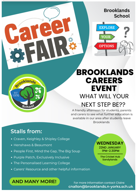 At Brooklands School, we aim to equip our students with the knowledge, skills, and attributes to achieve their full potential and outcomes. It is important that students are enabled to make informed decisions about Post 16 and 19 routes and the relevant pathways to support their longer-term plans. We have a planned programs in Key Stages 3-5 and work to the Gatsby Benchmarks and the Careers Statutory Guidance January 2018